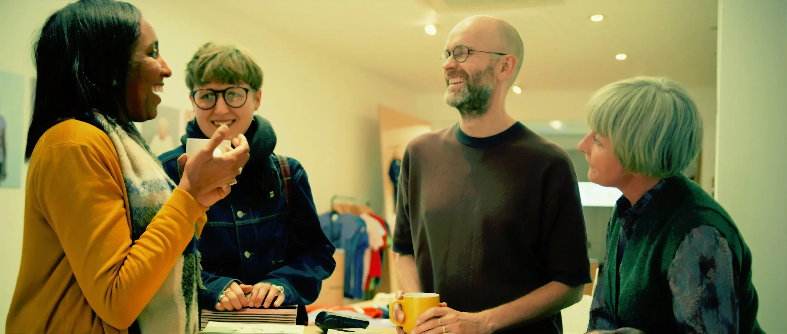 At the heart of the project there’s a collection of clothing, accessories and cards, which are sold in temporary shops that we’re opening in different places. There are gatherings and conversations, which invite people to come together to talk about grief. And there’s a billboard campaign, that makes grief visible in public spaces.