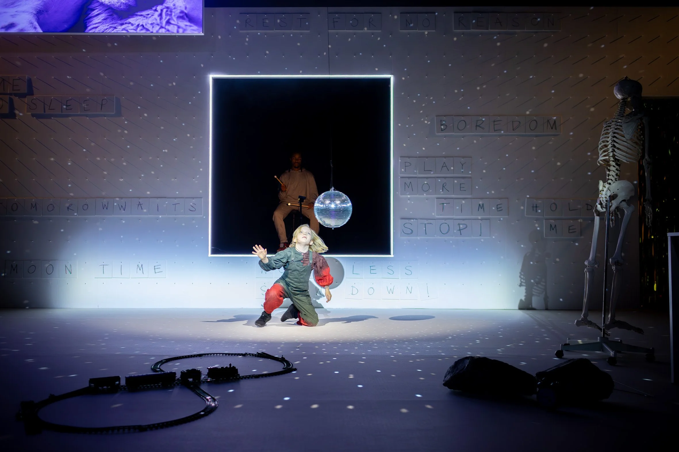 Time Keeps The Drummer is a durational show for family and adult audiences, performed by children and an adult percussionist. It playfully invites you to slow down and experience time differently. To step into a space where time is fluid, joyful and chaotic. A space of wild abandon and limitless possibility.